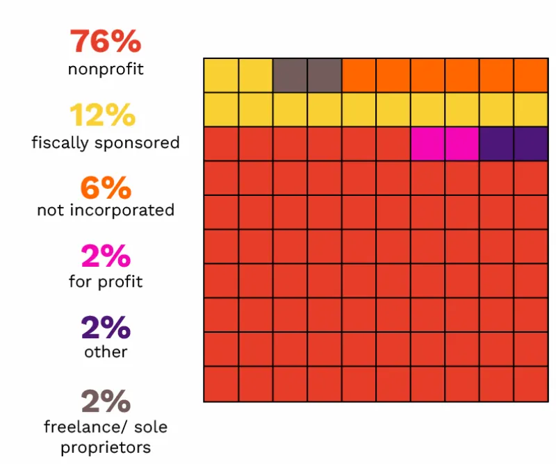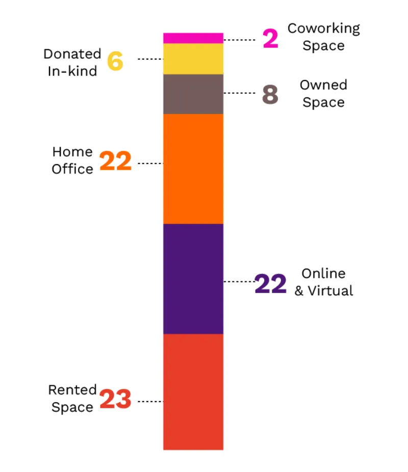 Arts entities that participated in the survey and mapping process shared the challenges they face in raising funds to grow their organizations, hire more staff, cover health insurance costs, maintain an effective organizational home, and support the professional careers of artists and creatives. They also provided data and told stories describing what most of us already knew or suspected—that POC-led organizations accomplish a great deal, and often with relatively small budgets, limited and precarious access to space, and minimal staff. Six key findings emerged from this work.